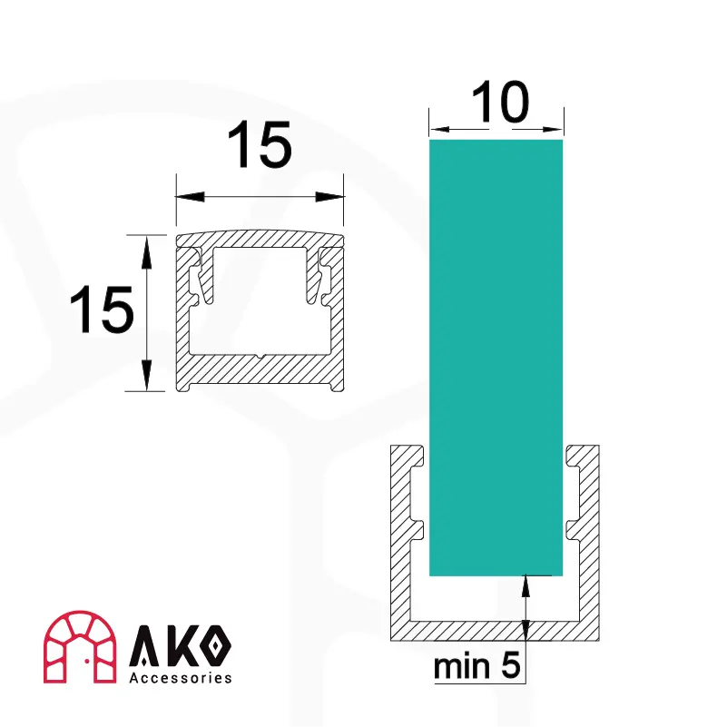 سازگاری پروفیل U 15 میلی متری با شیشه ۸ و ۱۰ میلیمتر