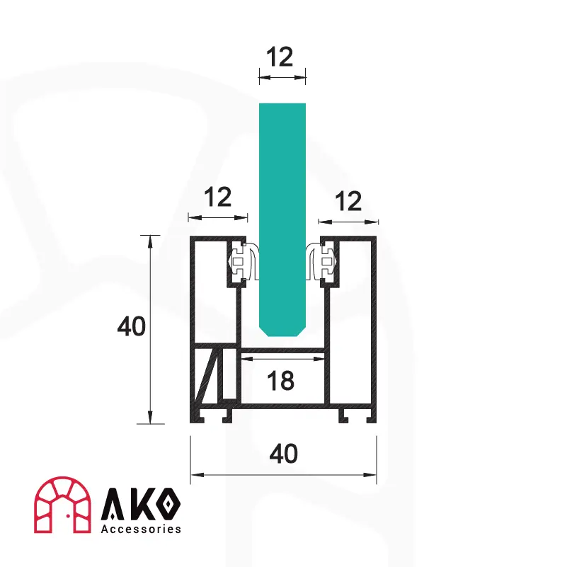 این پروفیل فضای داخلی لازم برای فیکس کردن شیشه ۱۲ میل همراه با نوارهای درزگیر، سیلیکون یا گسکتهای مخصوص را دارد.